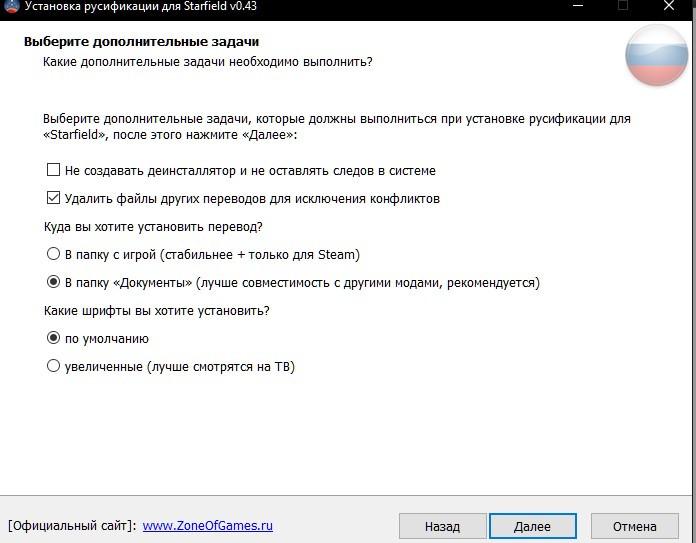 C:\Games\Starfield_1.7.23.0_SteamRip\Starfield\Install_Rus - вот в этой папке есть екзешник деинсталятора предыдущего перевода чтоб поставить потом новый. Я говорю о переводе от