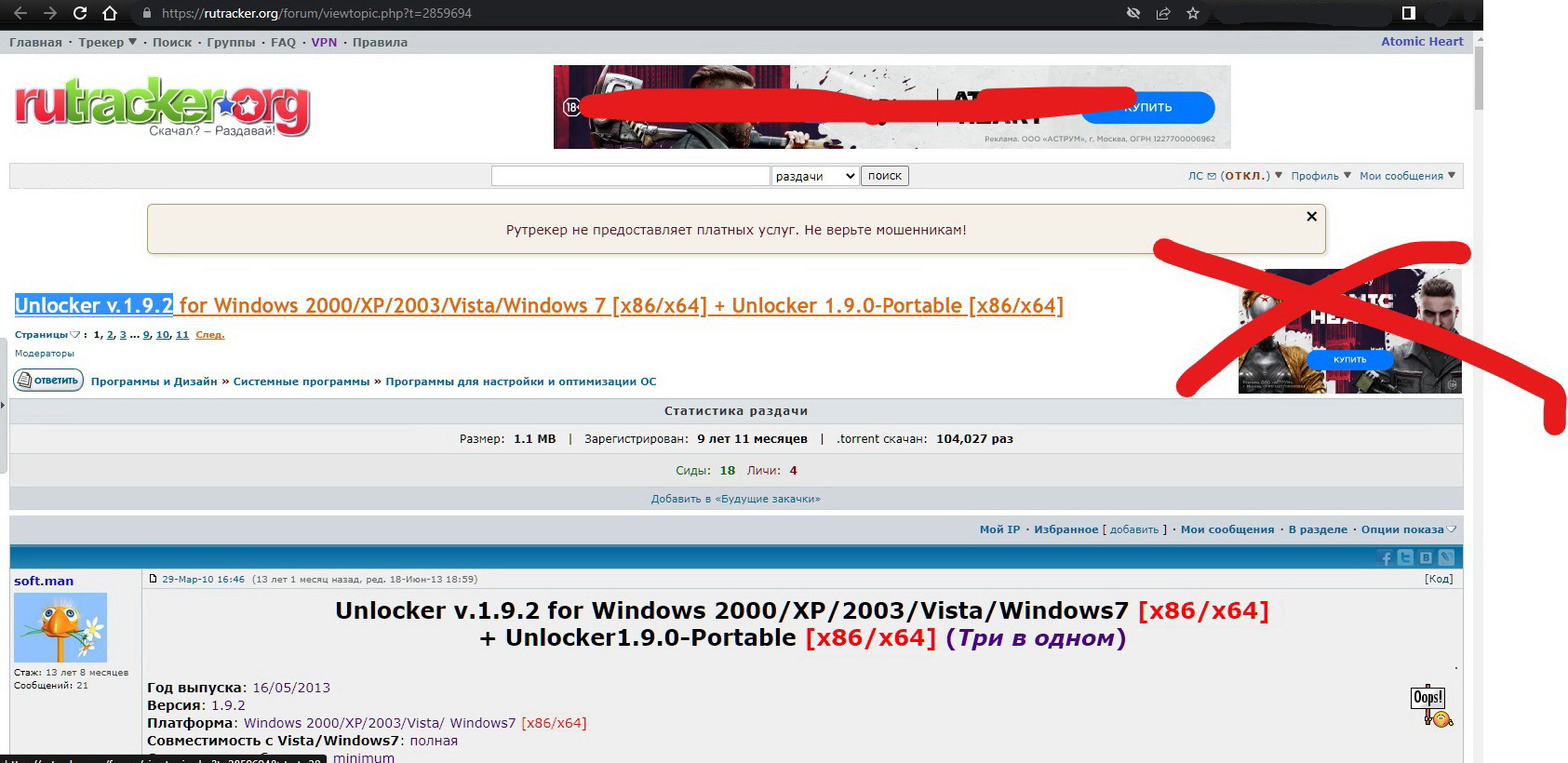 Всемирно известный рутрекер не открывается? Ну что сказать, печаль. Тогда у Вас есть два пути. Искать Unlocker v.1.9.2 в сети или папку игры удалить вручную. Ну или "звонок другу". Решайте сами что легче. У Вас наверное провайдер объявил войну пиратам и блокирует интернет ). Это уж точно не наша забота, как и удаление папки