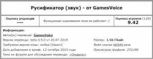 "Установлен русификатор звука от GamesVoice (Версия перевода: 0.9 от 20.07.2019)" завтрашний?