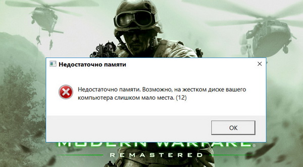 Недостаточно памяти.Возможно на жестком диске вашего компьютера слишком мало места.(12)