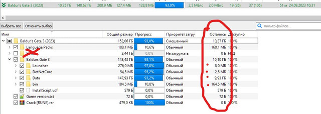 Как видим на скриншоте что есть папки которые нуждаются в дополнительной дозагрузке.